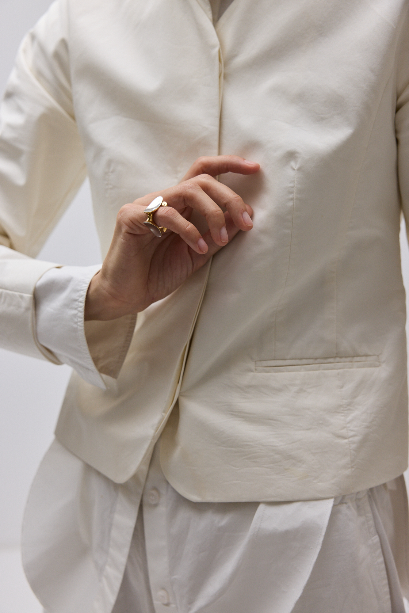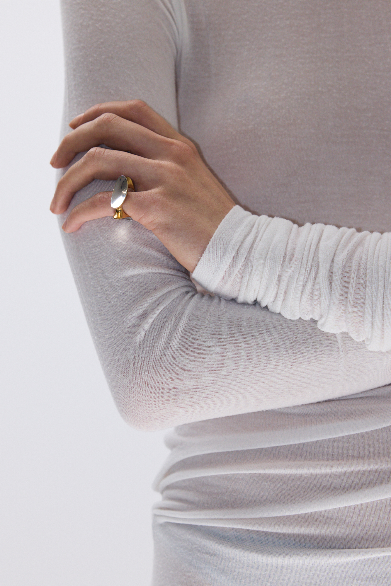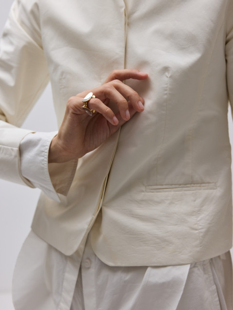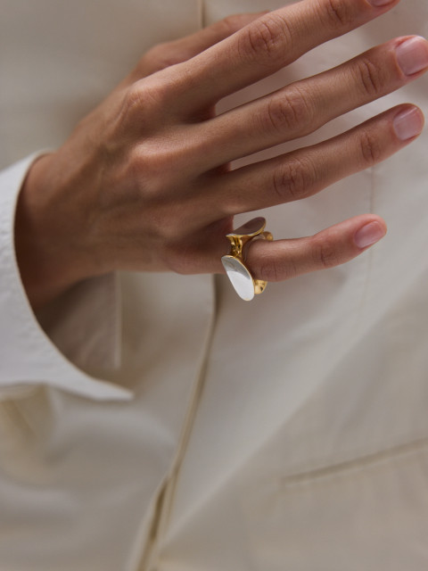 Фотогеничное кольцо нетривиальной формы, составленное из эллипсов, которые будто притягиваются к телу. Это кольцо разработано так, чтобы было удобно носить его на мизинце. Эллипсы расположены под разными углами, поэтому все стороны у кольца «рабочие».