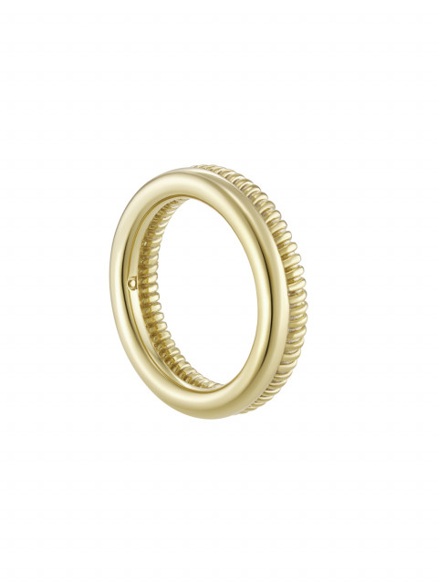 Унисекс кольцо с двумя фактурами. Строгое, но не строгое. Это что-то серьезное, как смеситель на ресторанной кухне или рабочий механизм, и что-то сентиментальное, как игрушка-пружинка.