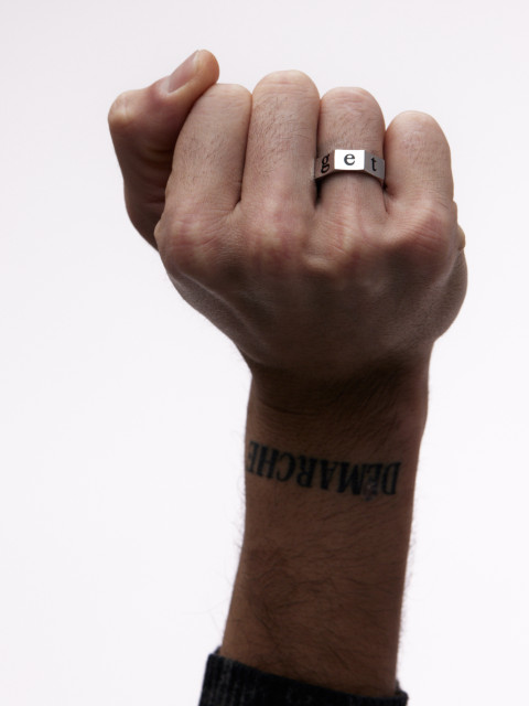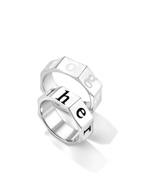 Партнерское кольцо, вдохновленное французским украшением 1400 года. На каждой грани по букве, которые складываются в слово together. Носить вместе, держаться вместе.