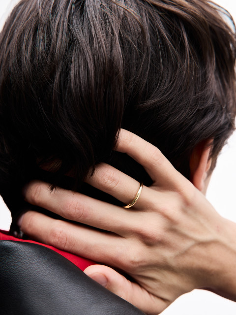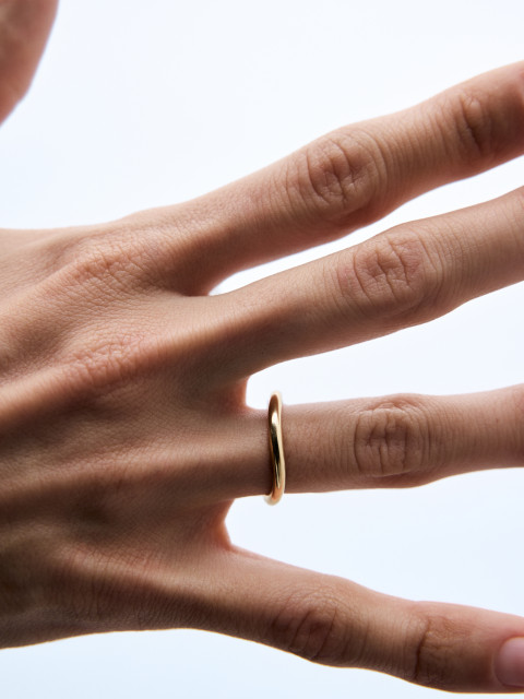 Союзное кольцо-компаньон для любого нашего помолвочного кольца. Универсальное, приятно пухлое и немногословное. Им можно дополнить даже неконвенциональную помолвку — кольцо-яблоко и перевертыш-сердце с бриллиантами и, наконец, носить помолвочное с обручальным на одном пальце.