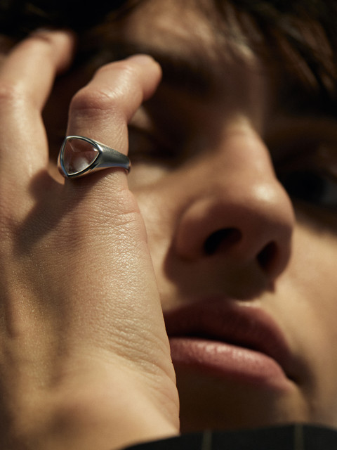 Треугольная печатка с камнем особой огранки. Хороша на мизинце и на безымянном.
