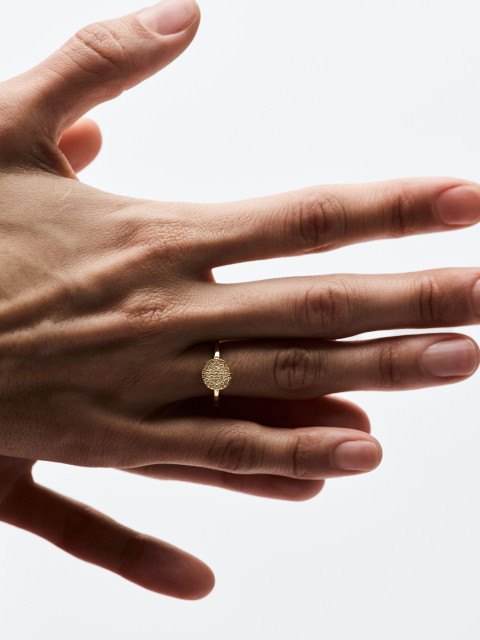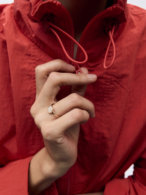 Лаконичное и элегантное кольцо из лимонного золота, которое подходит к обручальному кольцу с бриллиантами в грани.