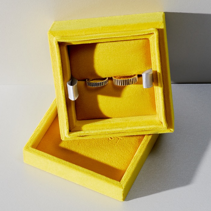 Ваше помолвочное или пара партнерских колец приедут к вам в велюровой подарочной шкатулке. Это бесплатно.